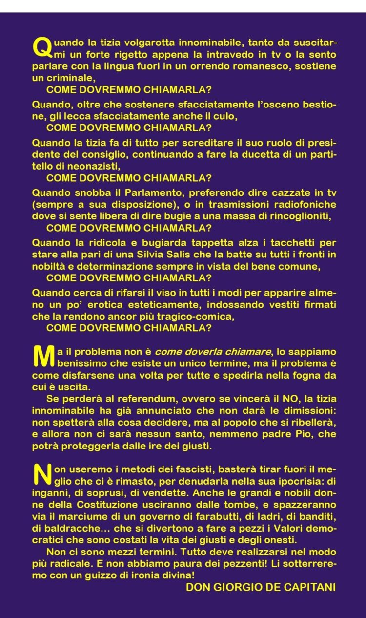 Come chiamarla con il suo vero nome una tizia così orrenda, bugiarda, ridicola, genuflessa ai potenti più criminali?
