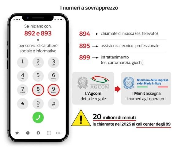 Premessa: se iniziano con 89 sono numeri telefonici a sovrapprezzo. Li usano i call center per farti parlare con astrologi, cartomanti, «esperti» del lotto, ma anche le aziende per offrire assistenza ai clienti (ad esempio il servizio informazioni di Italo è un 892) o per votare a Sanremo (con un 894).