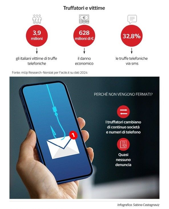 Ogni anno 3,9 milioni di italiani sono presi di mira dalle frodi telefoniche, che portano nelle tasche dei criminali all’incirca 600 milioni di euro. E una truffa su tre avviene via sms. Gli 893 usati per le finte «comunicazioni urgenti» sono centinaia e cambiano di continuo; mentre le società che li gestiscono, probabilmente, sono una manciata.