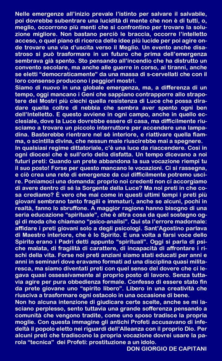 Riflettere, e non mettere sotto chiave scelte discutibili di giovani preti che si mettono a riposo