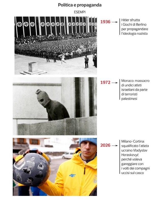 A Melbourne 1956 triplo boicottaggio: da parte della Cina per la presenza di Taiwan; Egitto, Libano e Iraq contro la crisi di Suez; Olanda, Spagna e Svizzera per l’invasione sovietica dell’Ungheria. Nel 1972 a Monaco irrompe il gruppo terroristico palestinese Settembre nero con il massacro di 11 atleti israeliani. Il Sudafrica dell’apartheid resta il Paese più a lungo escluso: da Tokyo 1964 fino al ritorno ai Giochi Olimpici di Barcellona 1992. Tra i boicottaggi più celebri, quello degli Stati Uniti e degli alleati contro Mosca 1980 per l’invasione sovietica dell’Afghanistan, a cui l’Urss risponde nel 1984 disertando le Olimpiadi di Los Angeles. Più recenti e blandi i boicottaggi di Sochi 2014: Obama, Cameron e Merkel evitano la cerimonia di apertura per le leggi omofobe russe. Pechino 2022: assente la diplomazia americana per le violazioni dei diritti degli uiguri. Xi Jinping non si scompone e ottiene da Putin il rinvio dell’invasione dell’Ucraina per garantire lo svolgimento dei Giochi. Milano Cortina: atleti russi e bielorussi partecipano senza bandiera, ma nessuna tregua olimpica: la Russia continua a bombardare l’Ucraina e le forze israeliane a sparare su Gaza.