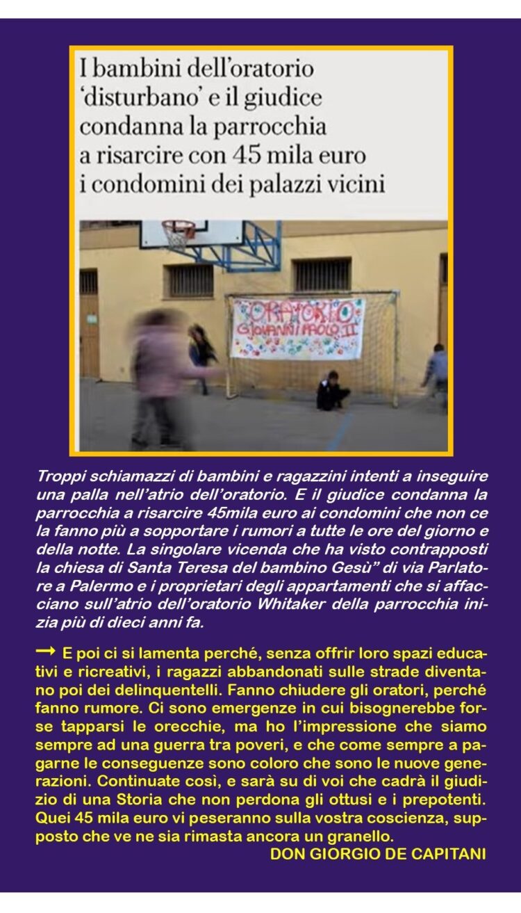 Gente così ottusa ed egoista da far chiudere gli oratori che fanno rumore… di ragazzi che giocano