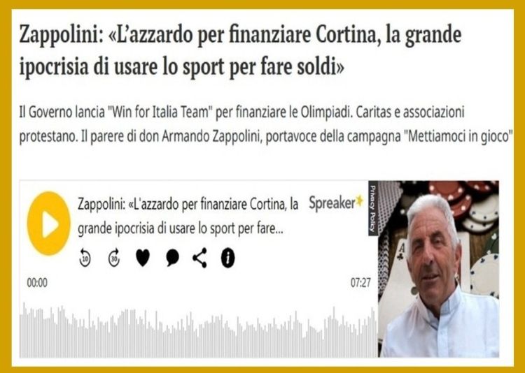 Don Armando Zappolini: “L’azzardo per finanziare Cortina…”